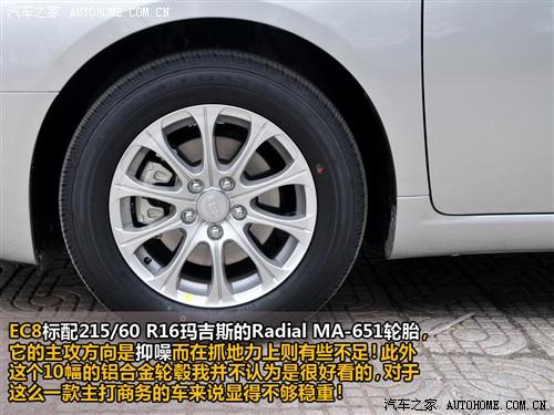 作為一款中型豪華車(chē)型,帝豪EC8必須使用鋁合金輪轂,不過(guò)圖中的這個(gè)10條幅樣式我個(gè)人不認(rèn)為很好看,或者說(shuō)是顯得不夠穩(wěn)重。此外,為了配合中型車(chē)應(yīng)該有的靜謐性,在輪胎上使用了瑪吉斯產(chǎn)的MA-651型靜音輪胎,同樣由于這個(gè)輪胎是偏向于抑制輪噪,因此在抓地力上有些不足,不過(guò)對(duì)于一款注重乘坐感的車(chē)來(lái)說(shuō),太強(qiáng)的抓地力不是重要的。