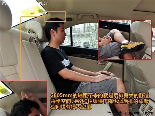 得益于2805的軸距,這款車讓后排乘客可以擁有相對充足的腿部空間,翹起二郎腿還是沒問題的,不過稍微費(fèi)點(diǎn)勁!另外,后排的地板比較平,因此如果后排中間坐人的話,腳不會太別扭!