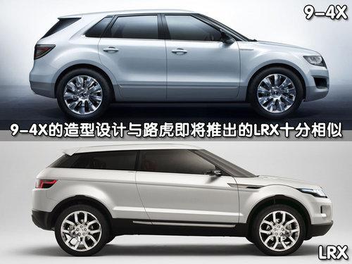 從側(cè)面看,薩博9-4X的造型與路虎即將推出的最低級別SUV-LRX十分相似。前寬后窄的車窗設(shè)計、車頂部線條以及尾部造型都很雷同。這兩款車上市之后,將會處于同一級別,這樣的設(shè)計,會讓消費者難以抉擇。