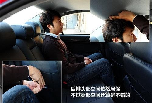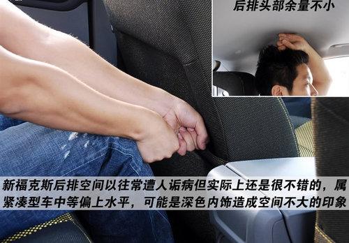 翼神的乘坐空間表現(xiàn)比福克斯稍遜,身高180cm的乘客在前排只有三指的空間,后排的頭部空間同樣不寬裕,基本只有兩指的水平。2635mm的軸距僅比?怂苟塘5mm,所以后排腿部空間表現(xiàn)還不錯,有一拳半的空間。