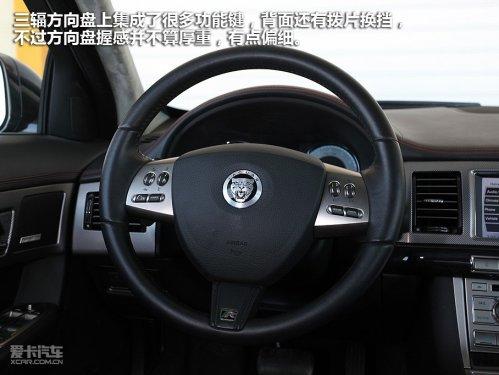 三輻方向盤上集成了很多功能鍵,背面還有撥片換擋,當(dāng)然,這并不值得大肆稱道,一切都因?yàn)檫@是XFR。如果以駕駛者的角度來(lái)挑問(wèn)題的話,我會(huì)嫌方向盤不夠厚重,主要體現(xiàn)在握感上,此時(shí)我不由得開(kāi)始懷念自己車上的R36方向盤。