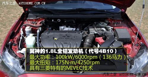 翼神的1.8L全鋁發(fā)動機(代號4B10)和2.0的一樣都是進(jìn)口的,最大功率100kW/6000rpm(136馬力),最大扭矩175N·m/4250rpm,具有三菱特有的MIVEC技術(shù)。變速箱方面則沒有變化,依然搭配的是5速手動或6速INVECS-III CVT變速箱。