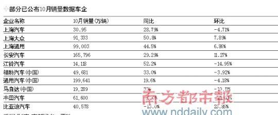 從已公布10月份產(chǎn)銷快報的幾家企業(yè)來看,在高基數(shù)的基礎上同比增速均在25%以上,較9月份也有所提升。但更多的尚未公布10月份產(chǎn)銷數(shù)據(jù)的車企均向記者表示,10月份的銷量不及9月份,“銀十”的確不如“金九”。