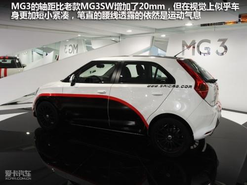 MG3的車身尺寸分別為長/寬/高3999mm/1728mm/1517mm,軸距為2520mm,比上一代車型增加了20mm。整車看起來小巧精悍,同時非常飽滿,犀利的運動風格是最為明顯的基調(diào),無論是前臉的“大嘴”設(shè)計,還是側(cè)面筆直的腰線,都顯示出MG3的目標受眾為喜愛運動的年輕人群。