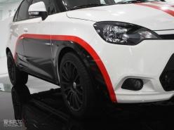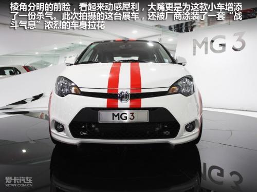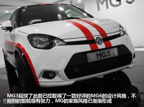 此次拍攝的這臺展車,經(jīng)過了廠家的輕度改裝。主要是“身披”了一套戰(zhàn)斗風格非常濃烈的車身拉花,以及4個黑色的賽車競技風格輪轂,其余部分與量產(chǎn)車型無異。外觀經(jīng)過精心改造的MG3愈顯有型,是一臺非;鹄钡倪\動型A0級小車。從前臉可以看出,MG3與MG6風格十分相似,顯然MG品牌已經(jīng)找到了屬于自己獨特的家族風格。