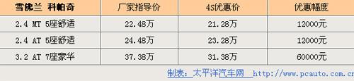 筆者日前走訪北京上海通用雪佛蘭4S店時(shí)獲悉,目前科帕奇最高優(yōu)惠達(dá)到6萬元,科帕奇的性能體現(xiàn)了美國SUV的風(fēng)格,大部分時(shí)間是在公路上飛馳,能夠擁有一般轎車無法比擬的高度和視野。偶爾想要撒一下歡或者應(yīng)付一下壞路也不會(huì)讓你失望。詳情請見下表: