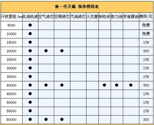 5.保養(yǎng)費。我們向東風日產4S店售后服務人員咨詢過,新一代天籟保養(yǎng)周期為5000km,首保在5000km時進行(免費),以后每5000km做一次保養(yǎng),以一年2萬公里來計算其一年保養(yǎng)費平均用在900元。