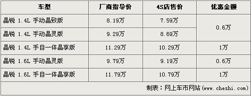 據(jù)記者走訪北京多家斯柯達(dá)經(jīng)銷店獲知,近期購買斯柯達(dá)晶銳的消費者可以得到最高1萬元的優(yōu)惠。斯柯達(dá)晶銳的手動擋車型相對優(yōu)惠幅度小一點,但也達(dá)到了6000元。經(jīng)優(yōu)惠后,入門級的斯柯達(dá)晶銳1.4L手動晶致版售價從8.19萬元下降到了7.59萬元。手自一體的車型優(yōu)惠金額達(dá)到了1萬元,全系最高配的1.6L手自一體晶享版售價從11.79萬元降到了10.79萬元。