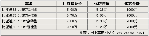 據(jù)比亞迪汽車4S店銷售人員介紹,目前比亞迪F3智能白金版只有實用型、標準型和豪華型有現(xiàn)車銷售,智能型和自動擋車型都現(xiàn)車不足,暫時也不接收預訂。現(xiàn)在購買比亞迪F3智能白金版可以有較大的優(yōu)惠幅度,其中標準型,豪華型可以優(yōu)惠7000元;智能型也可優(yōu)惠7000元,但需要預訂。該比亞迪4S店銷售人員表示,如果到店詳談,還可以有更多的優(yōu)惠幅度。