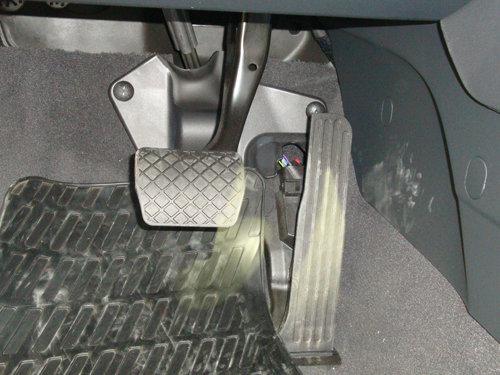 踏板面積比較大,采用膠皮質(zhì)地,稍稍感覺有些遺憾,如果能采用賽車樣式的就更完美了。使用起來感覺不錯,行程及軟硬程度都比較舒服。