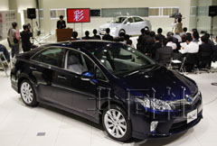 豐田汽車公司20日發(fā)布混合動力中型轎車“SAI”。(圖片來源:共同社)