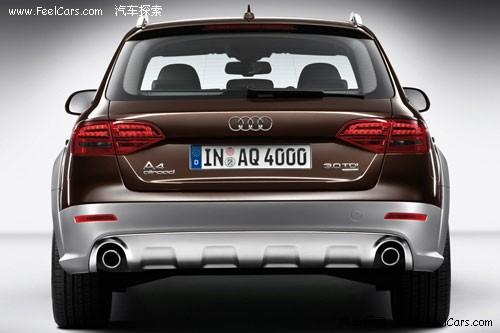 以A4 Avant旅行車衍生而來的A4 Allroad,車內(nèi)空間與前者大致相同,經(jīng)升高及強化的懸掛系統(tǒng)令A(yù)4 Allroad擁有了更佳的越野性能。奧迪為A4 Allroad提供了一款汽油機及兩款柴油機,分別為211馬力的2.0升TFSI缸內(nèi)直噴渦輪增壓發(fā)動機(汽油機)和專為歐洲市場準(zhǔn)備的2.0L TDI(170馬力)、3.0L TDI(240馬力)的兩款柴油發(fā)動機。