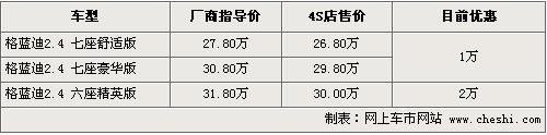 筆者從進口三菱北京地區(qū)經銷商處了解到,目前4S店格藍迪只有為數不多的現車供應,受匯率影響,格藍迪對外的報價不太穩(wěn)定。全系七座版車型可優(yōu)惠1萬元左右,六座精英版最高可優(yōu)惠到2萬元。但這兩款車均需要預訂,據銷售人員介紹,近期將陸續(xù)有一批新車到店,數量和顏色較多。