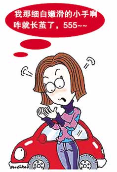 對策:現(xiàn)在一般的美容院都有護(hù)手霜,如果手臂確實(shí)粗大,建議做一些瘦臂護(hù)理,也有專門的瘦臂霜賣。長時(shí)間開車的車友,注意帶手套,如果已經(jīng)長了繭的,建議經(jīng)常到美容院做做保養(yǎng)。(老云)