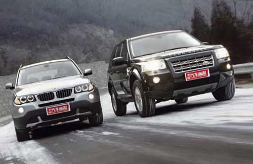 同出名門,且個性鮮明,在車身尺寸和價格上也都相近。因此,神行者2和X3自然而然成為直接競爭對手。有鑒于性能特點,在進入測試內(nèi)容前,我們先明確一下對它們的稱呼。顯然,“SUV”這個概念寬泛、模糊的名詞缺乏準(zhǔn)確性。那就按照廠家各自的定位來歸類它們的屬性吧,路虎神行者2——越野車、寶馬X3——SAV(Sport Activity Vehicle)。