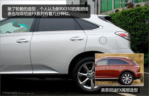 與舊款RX350圓滑飽滿的尾部線條不同,新RX350的尾部曲線更加銳利。個(gè)人彷佛又在這里看到了些許英菲尼迪FX系列的影子。