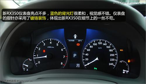 相對(duì)于充滿驚喜的方向盤,新RX350儀表盤的亮點(diǎn)并不多,藍(lán)瑟的背光燈很柔和,視覺(jué)感不錯(cuò)。值得一提的是儀表盤的指針亦采用了鍍鉻裝飾,體現(xiàn)出新RX350在細(xì)節(jié)上的一絲不茍。