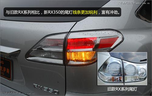 新RX350變化最大的莫過(guò)于全新設(shè)計(jì)的組合式尾燈了。更流線型的造型,更絢麗的LED燈組合,營(yíng)造出跑車般的視覺(jué)效果。