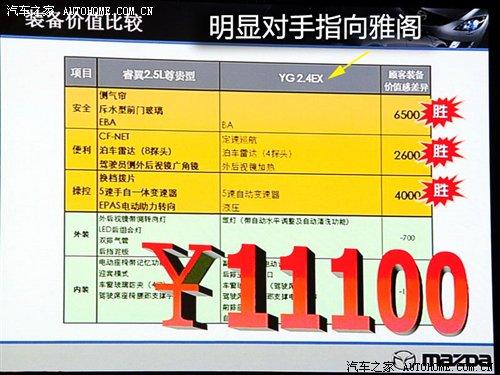 此次上市發(fā)布會上面一汽馬自達將自己的配置和同級別車型進行了對比,公開發(fā)布了同級別售價的車型相比睿翼在配置方面的性價比會高出1.11萬元的口號,并且現場用PPT進行了展示。
