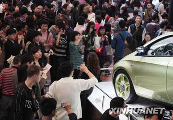4月25日,2009上海國際車展開幕后迎來首個(gè)雙休日,當(dāng)日接待參觀者突破13.6萬人次,展車被“淹沒”在“人!敝小P氯A社發(fā)(吳長青 攝)