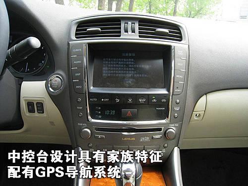 IS300裝備了GPS語音導(dǎo)航系統(tǒng),實(shí)際使用中,導(dǎo)航信息準(zhǔn)確,操作簡單便捷。中控臺整體設(shè)計風(fēng)格具有家族特性。