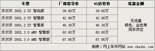 據(jù)4S店銷售人員介紹,目前國產(chǎn)沃爾沃S80有部分現(xiàn)車到店,有銀色、金色車身外觀可供消費(fèi)者挑選。目前國產(chǎn)加長版尚未出現(xiàn)優(yōu)惠幅度。另據(jù)銷售人員介紹,現(xiàn)售的加長S80都是淺色內(nèi)飾,在8月份沃爾沃將推出黑色內(nèi)飾版,包含全系車型。黑內(nèi)飾版將為消費(fèi)者提供更豐富的購車選擇。