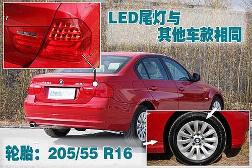 車尾部分318的尾燈與其他款式車型相同,使用了夜晚辨識(shí)性更高、反映更快的LED燈泡。該車配備了205/55 R16的馬牌防爆輪胎,如果輪胎虧氣仍然可以行駛150公里。
