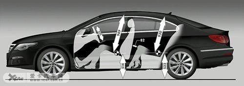 4913mm×1873mm×1390mm的三圍也比大眾CC略大,2854mm的軸距比大眾CC的2711mm長了不少,所以后排空間局促的情況稍有緩解。