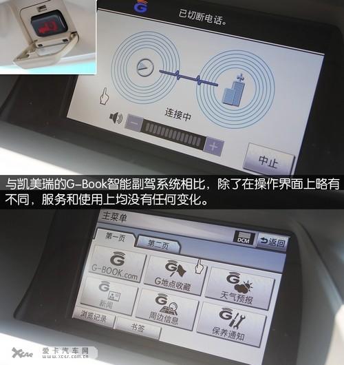 那么Remote Touch信息操作系統(tǒng)能夠控制哪些功能呢?除了常規(guī)的空調、音響、電話和導航等功能,之前在凱美瑞上亮相的G-Book智能副駕系統(tǒng)也被整合其中,除了在操作界面上略有不同,服務和使用上均沒有任何變化。