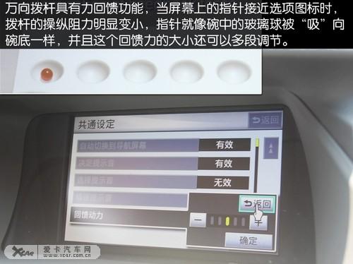 而且萬向撥桿居然有力回饋功能,當屏幕上的指針接近選項圖標時,撥桿的操縱阻力明顯變小,指針就像碗中的玻璃球被“吸”向碗底一樣,并且這個回饋力的大小還可以多段調節(jié)。