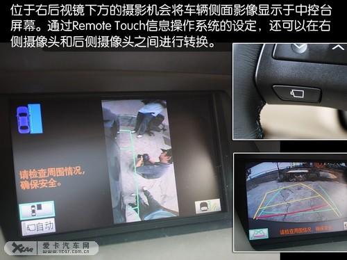 造型典雅的三輻式真皮方向盤功能不少,不僅能夠控制常規(guī)的音響和行車數(shù)據(jù)的選擇,按下左下方的車側攝影輔助系統(tǒng)開啟按鈕,位于右后視鏡下方的攝影機會將車輛右側影像顯示于中控臺屏幕,并提供廣角與輔助線功能。通過Remote Touch信息操作系統(tǒng)的設定,還可以在右側攝像頭和后側攝像頭之間進行轉換。