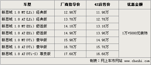 現(xiàn)售的思域是今年年初推出的改款后的車型,經(jīng)過19項之多的技術(shù)改進(jìn)后,新思域整體的性價比有了一定程度提升。尤其是新裝備的源于F1賽車的換檔撥片以及全新三幅多功能方向盤更突出了新思域的運動感,讓駕駛者更能體會駕馭的樂趣。目前根據(jù)網(wǎng)上車市價格監(jiān)測系統(tǒng)顯示,新思域全系可以優(yōu)惠現(xiàn)金1萬元,同時送5000元裝飾。