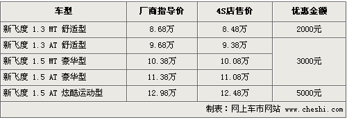 新飛度一直是AO級市場最熱銷的一款車型之一,動感時尚的外觀是最大的亮點,其次運動感強烈的內飾方向盤,頂配裝有運動座椅。而最值得一提的是新飛度在城市行駛具有非常經濟的油耗,所以廣受歡迎。目前筆者從廣州本田經銷商處了解到,新飛度現在最高可優(yōu)惠現金5000元,具體行情如下: