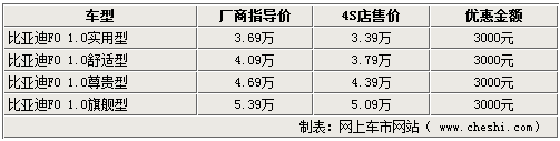 據(jù)銷售人員介紹,現(xiàn)在比亞迪F0愛國版igo系列車型的現(xiàn)車比較齊全,只有旗艦型沒有現(xiàn)車,但消費者可以預(yù)訂。售價3.99萬元的老款舒適型現(xiàn)在已經(jīng)停產(chǎn),而老款豪華型目前還有部分現(xiàn)車銷售。另外,比亞迪F0老款豪華型和尊貴型等全系目前都可以優(yōu)惠現(xiàn)金3000元。