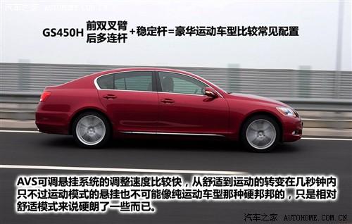GS450h上裝配的AVS適應(yīng)式可調(diào)懸掛系統(tǒng),可以自動連續(xù)調(diào)整減震器的阻尼。當(dāng)然,也可以通過人工設(shè)置,分為普通和運(yùn)動兩種狀態(tài)。普通模式下,懸掛和減震系統(tǒng)更多的顧及車內(nèi)舒適程度,偏軟的懸掛和松軟舒適的座椅讓駕駛員很難有想深踩油門的沖動,大部分的路感被懸掛系統(tǒng)吸收,傳進(jìn)車內(nèi)的只有少數(shù)幅度稍大一點(diǎn)的波動;運(yùn)動模式下的懸掛系統(tǒng)表現(xiàn)得相對更敏感,對路面信息的傳遞也更清晰一些,但還談不上純正的運(yùn)動車型的那種硬邦邦的懸掛調(diào)校,畢竟這不是那一類型的車。