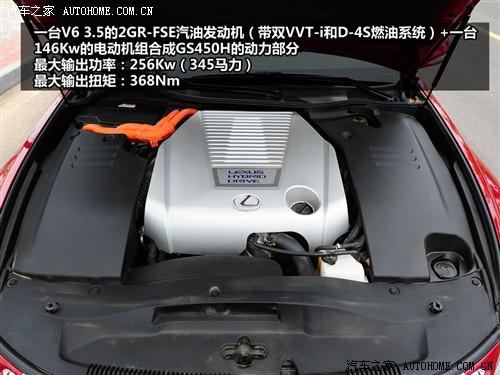 我們還是有必要先來了解一下這款車的動力系統(tǒng),首先是一臺3.5升的6缸汽油發(fā)動機(jī),這臺發(fā)動機(jī)所具備的雙VVT-i系統(tǒng)和D-4S燃油系統(tǒng)的應(yīng)用讓燃油燃燒更加充分,所提供的368牛米的最大扭矩和218千瓦的最大功率已經(jīng)讓人滿意了,再加上一臺147千瓦和275牛米的電動機(jī)的輔助,GS450h的動力系統(tǒng)看起來已經(jīng)相當(dāng)強(qiáng)大。不過,實(shí)際上最終的輸出功率并不是將兩者的數(shù)值簡單的相加,由于電動機(jī)和發(fā)動機(jī)采用類似混連的方式,因此GS450h最終的輸出功率為256 kW。