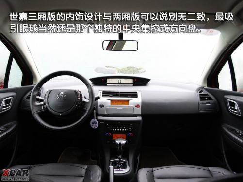 內(nèi)飾的設(shè)計(jì)依舊保持了雪鐵龍特立獨(dú)行的設(shè)計(jì)風(fēng)格,數(shù)字式的儀表不偏不倚的矗立在前檔玻璃下方,并且采用半透設(shè)計(jì),此類設(shè)計(jì)在其他車型上絕無(wú)類似。雙輻方向盤中央裝載氣囊的部分不會(huì)隨著方向盤轉(zhuǎn)動(dòng),這使得世嘉可以使用非圓形的駕駛座安全氣囊,以更好的保護(hù)駕駛者。