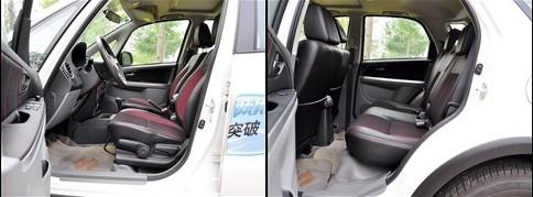 首先說說SX4較高的駕駛坐姿,個人感覺很適合這類Cross車型的特點,視野開闊、方便輕松駕駛。其次,這款運動版車型的座椅采用了雙色雙材料設(shè)計,視覺效果不錯,且支撐性和包裹性都令人滿意。前排側(cè)向的支撐較硬,坐墊角度合適,個人認為長時間駕駛帶來的疲勞程度在可接受的范圍內(nèi)。