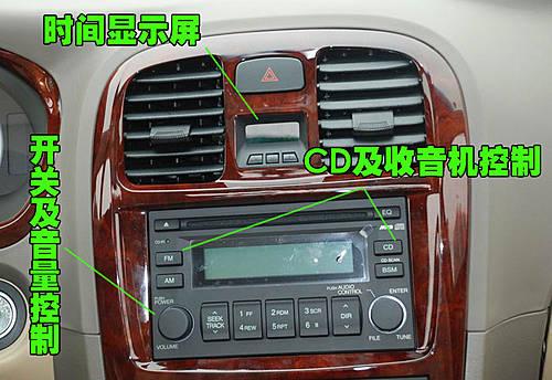 名馭的音響控制區(qū)域上方位置配備了時間顯示屏幕,并可以手動調(diào)節(jié)。單碟CD以及收音機功能控制均有配備。按鍵使用時操作比較方便。