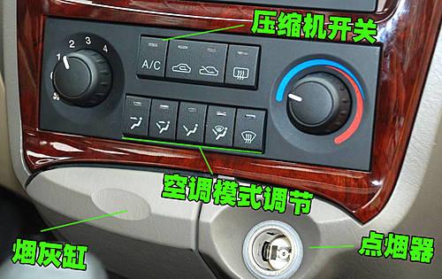 名馭的空調(diào)控制區(qū)域和老款風格一樣,下方位置配備了一個隱藏式的煙灰缸,右邊配備了點煙器。按鍵和旋鈕操作時沒有松垮的感覺。