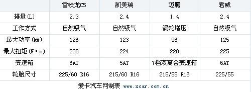 通過數(shù)據(jù)的直接比對,最大的好處就直觀的反映出各車型之間的配置差距。