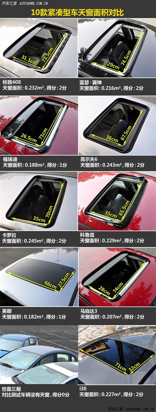 對(duì)于很多購(gòu)買緊湊型車的用戶來(lái)說(shuō),“天窗”對(duì)他們有很大的吸引力,不僅因?yàn)檫@是一項(xiàng)很顯豪華的配置,天窗對(duì)于車內(nèi)的換氣、車內(nèi)氣氛的營(yíng)造也具有很大的作用,所以我們比一下十款車誰(shuí)的天窗面積最大,誰(shuí)的天窗就更有優(yōu)勢(shì)。