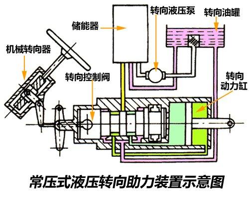 根據(jù)系統(tǒng)內(nèi)液流方式的不同可以分為常壓式液壓助力和常流式液壓助力。常壓式液壓助力系統(tǒng)的特點(diǎn)是無論方向盤處于正中位置還是轉(zhuǎn)向位置、方向盤保持靜止還是在轉(zhuǎn)動,系統(tǒng)管路中的油液總是保持高壓狀態(tài);而常流式液壓轉(zhuǎn)向助力系統(tǒng)的轉(zhuǎn)向油泵雖然始終工作,但液壓助力系統(tǒng)不工作時,油泵處于空轉(zhuǎn)狀態(tài),管路的負(fù)荷要比常壓式小,現(xiàn)在大多數(shù)液壓轉(zhuǎn)向助力系統(tǒng)都采用常流式?梢钥吹,不管哪種方式,轉(zhuǎn)向油泵都是必備部件,它可以將輸入的發(fā)動機(jī)機(jī)械能轉(zhuǎn)化為油液的壓力。