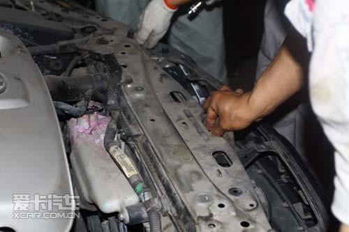 工人師傅們開始動手拆掉外部擋板,來徹底查看一下水箱冷凝器,是不是因為異物和灰塵的堆積導(dǎo)致散熱能力下降,并清理水箱冷凝器外部進(jìn)氣網(wǎng)。