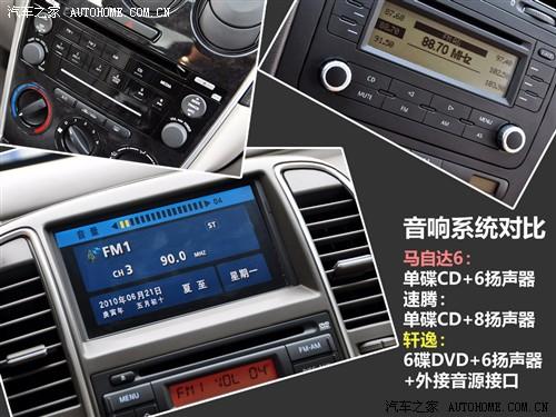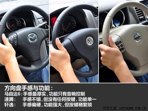 總的來說,作為頂配車型的軒逸具有的舒適性配置更高,特別是帶有倒車影像和DVD播放的中控臺(tái)彩色大屏顯得很有吸引力,而無匙啟動(dòng)也十分上檔次。速騰的配置也要比馬自達(dá)6更豐富一些,特別是安全配置一直是他的強(qiáng)項(xiàng),而尺寸更大、級(jí)別更高的馬自達(dá)6在這方面的確沒有優(yōu)勢,不過話說回來,馬自達(dá)6的舒適性配置對于日常駕駛來說已經(jīng)完全足夠。