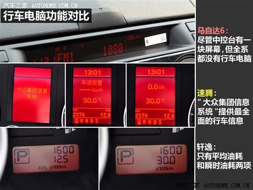 在這方面,馬自達(dá)6表現(xiàn)出了中型車的一些優(yōu)勢(shì),有軟性材質(zhì)的中控臺(tái)、四門一鍵上下的車窗、鋁合金全尺寸備胎和四方向調(diào)節(jié)的多功能方向盤,只是因?yàn)樵O(shè)計(jì)年代較早而沒有行車電腦;速騰的表現(xiàn)也不錯(cuò),他有手感最好的中控面板和最強(qiáng)大的行車電腦,但備胎不能令人滿意,做工也出現(xiàn)一點(diǎn)瑕疵;軒逸在這方面并沒有表現(xiàn)出日系車型的優(yōu)勢(shì),這里體現(xiàn)出了一些他在成本上控制比較嚴(yán)格的不足。