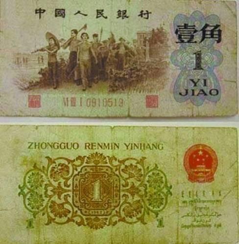 “背綠水印壹角于1962年印刷,其正面為深棕色,與普通的壹角票面無異,但背面卻有部分顏色為墨綠色,故集幣界稱之為‘背綠壹角’!奔瘞艑<冶硎荆捎谟∷r采用的鈔票紙不同,“背綠壹角”有帶五星水印和無水印兩種版式,其中帶五星水印的“背綠壹角”存世量十分稀少。有媒體報道,在2000年以前,背綠水印壹角從未發(fā)現(xiàn)過贗品。近年來,由于升值很快,造假者采用各種高科技手段進(jìn)行偽造,市面上逐步出現(xiàn)了贗品。