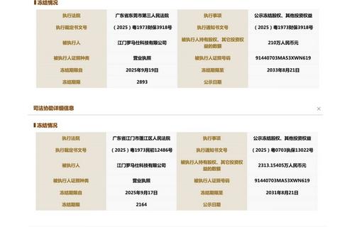 此外,深圳羅馬仕科技有限公司所持江門羅馬仕科技公司175.88萬人民幣被深圳市南山區(qū)人民法院凍結(jié)。