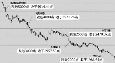 受國際市場大幅下跌影響,繼9月16日跌破2000點關(guān)口之后,上證綜指17日繼續(xù)下行,收于1929.05點,股市重返“1”時代。