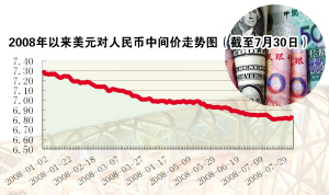值得注意的是,在市場短期升值預(yù)期依舊強(qiáng)烈的同時,人民幣遠(yuǎn)期匯率卻與此出現(xiàn)分化,近期境內(nèi)銀行間外匯市場上,美元兌人民幣6個月和1年期遠(yuǎn)期貼水點(diǎn)數(shù)正在逐步下滑,昨日分別報(bào)于1260基點(diǎn)和1770基點(diǎn),較7月初已出現(xiàn)顯著下降。
